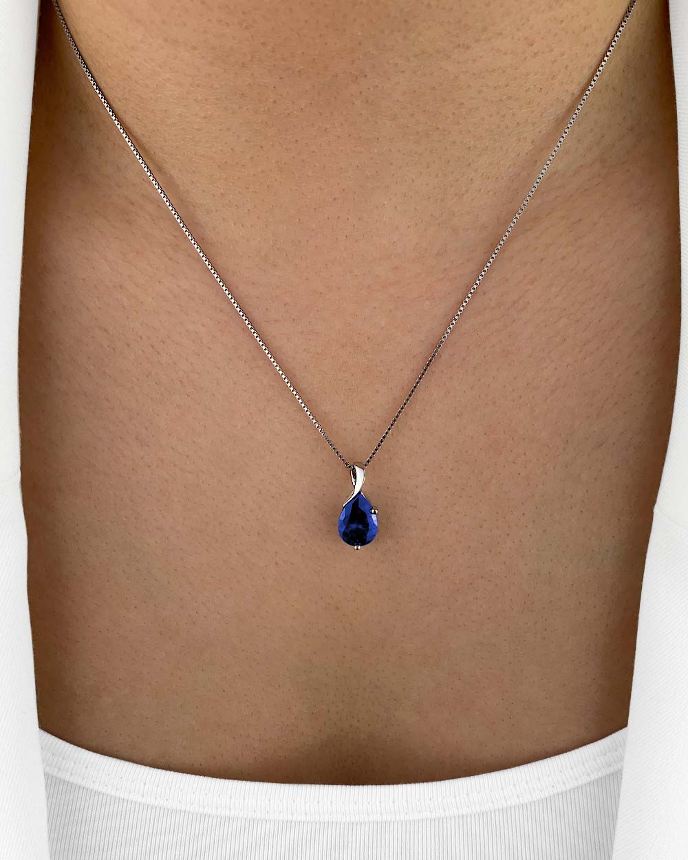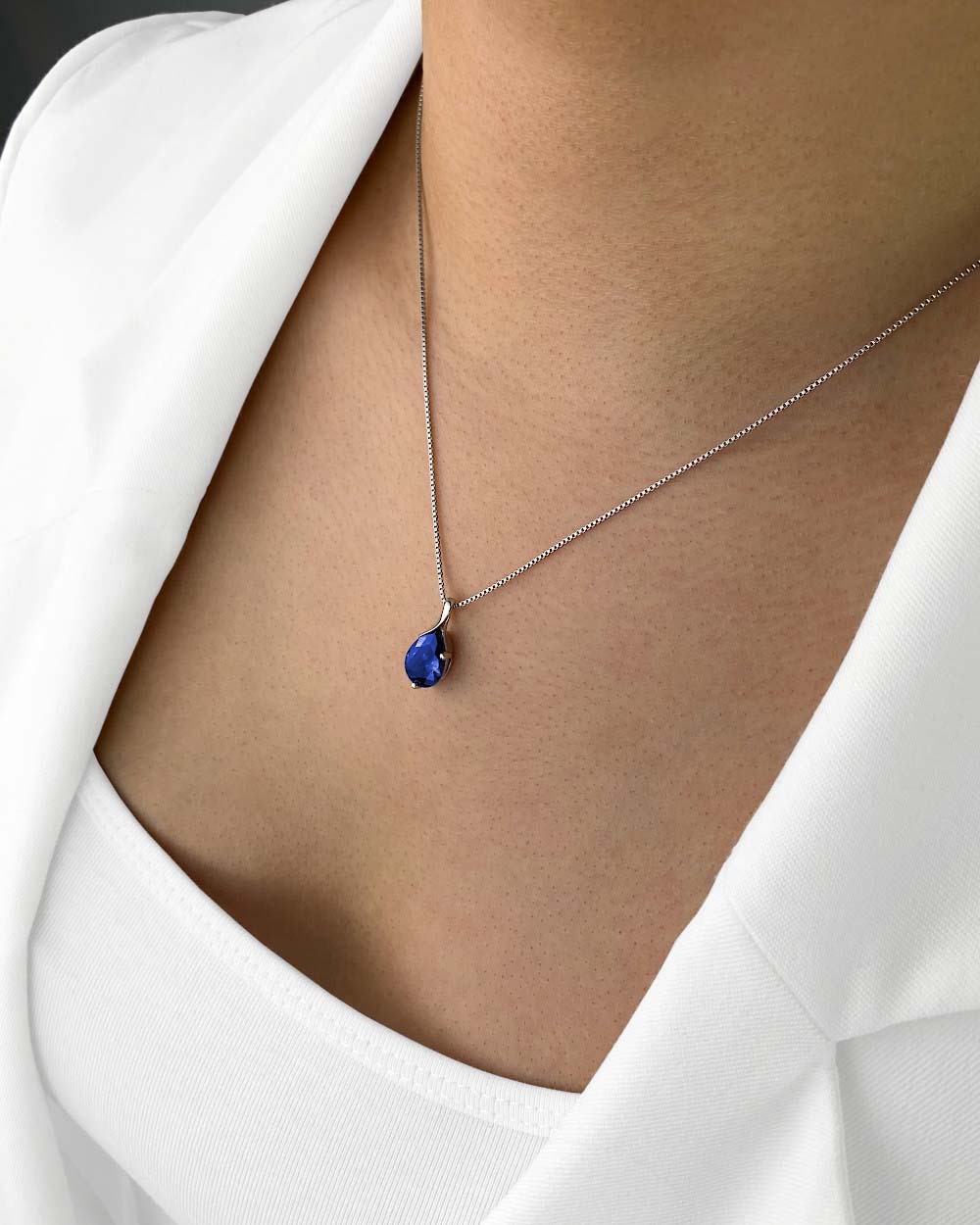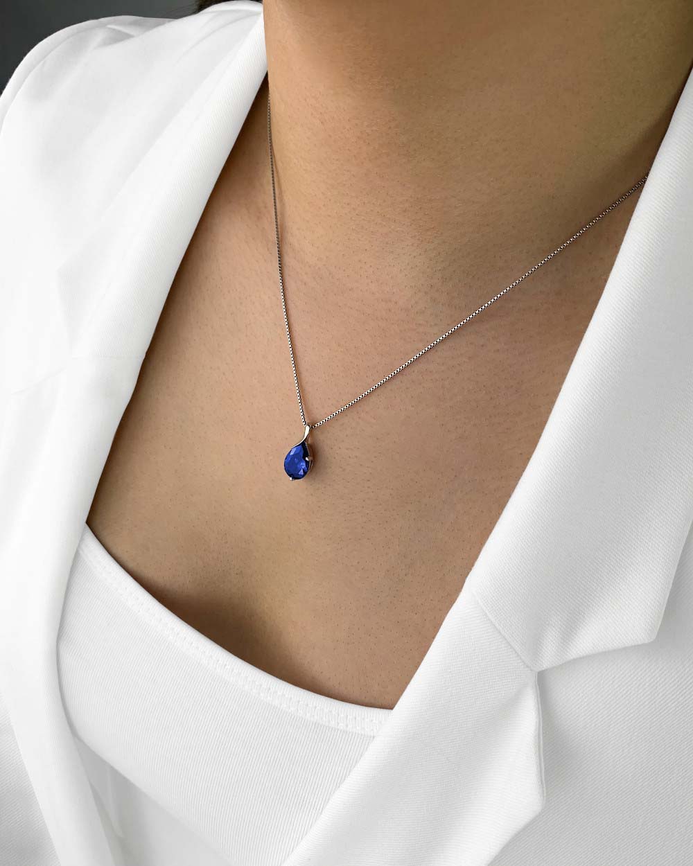DANIEL CLIFFORD „Violette“ Damen Halskette Silber 925 Anhänger Kristall blau, 45cm filigrane Silberkette Kristallanhänger dünne Kette Stein königsblau