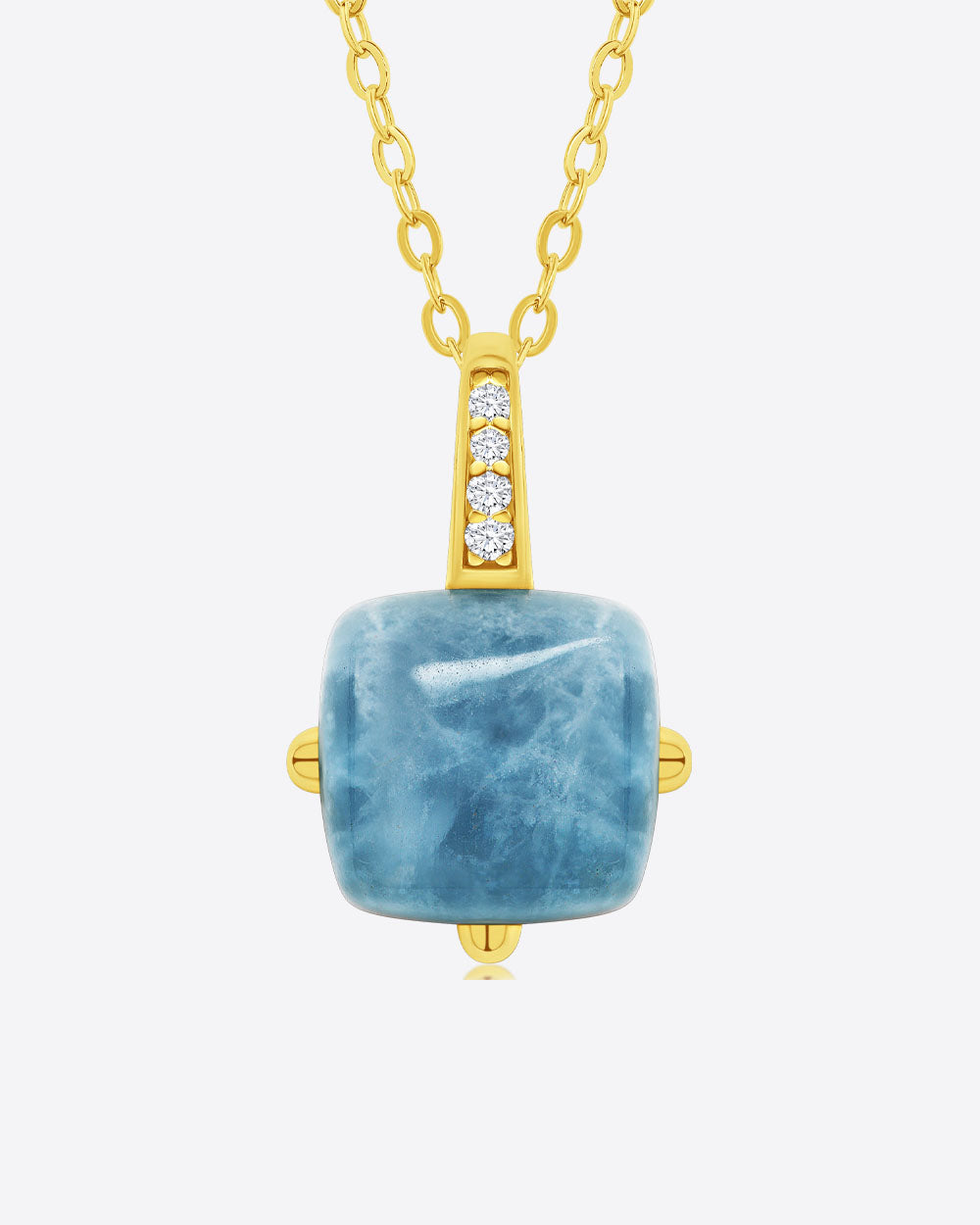 Die stilvolle Halskette Evana besteht aus feinstem 925er Silber, einer hochwertigen Beschichtung aus 585er Gold, funkelnden Zirkonia Kristallen und einem echtem Aquamarin-Edelstein. Sie vereint zeitlose Schönheit mit femininer Eleganz und gibt Deinem Outfit einen besonders edlen Look. Der natürliche Aquamarin in zartem Himmelblau ist quadratisch geschliffen und sanft abgerundet. Der blaue Edelstein ist ein absoluter Blickfänger und fasziniert durch die beruhigende und warme Ausstrahlung. Die vergoldete Silberkette hat eine Kettenlänge von 45cm und bietet langanhaltende Freude sowie höchsten Tragekomfort. In einer edlen Verpackung geliefert – das perfekte Geschenk für Deine Liebsten.