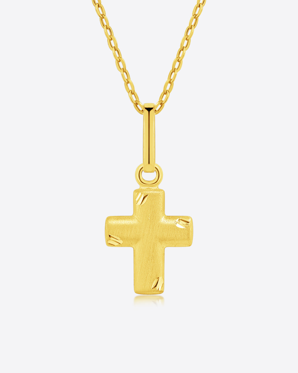 Die edle Halskette Leonora besteht aus feinstem 375er Echtgold und vereint schlichte Eleganz mit tiefer Bedeutung. Der stilvolle Kreuzanhänger ist ein zeitloses Schmuckstück für jede Gelegenheit und ein stilvoller Begleiter für den Alltag. Die sanft mattierte Oberfläche, die feinen Gravurdetails und der warme Glanz des Goldes unterstreichen die zeitlose Schönheit diese Symbols für Glauben, Hoffnung und Kraft. Die filigrane Goldkette ist größenverstellbar mit einer Kettenlänge von 40cm bis 45cm und bietet langanhaltende Freude sowie höchsten Tragekomfort. In einer edlen Verpackung geliefert – das perfekte Geschenk für Deine Liebsten.